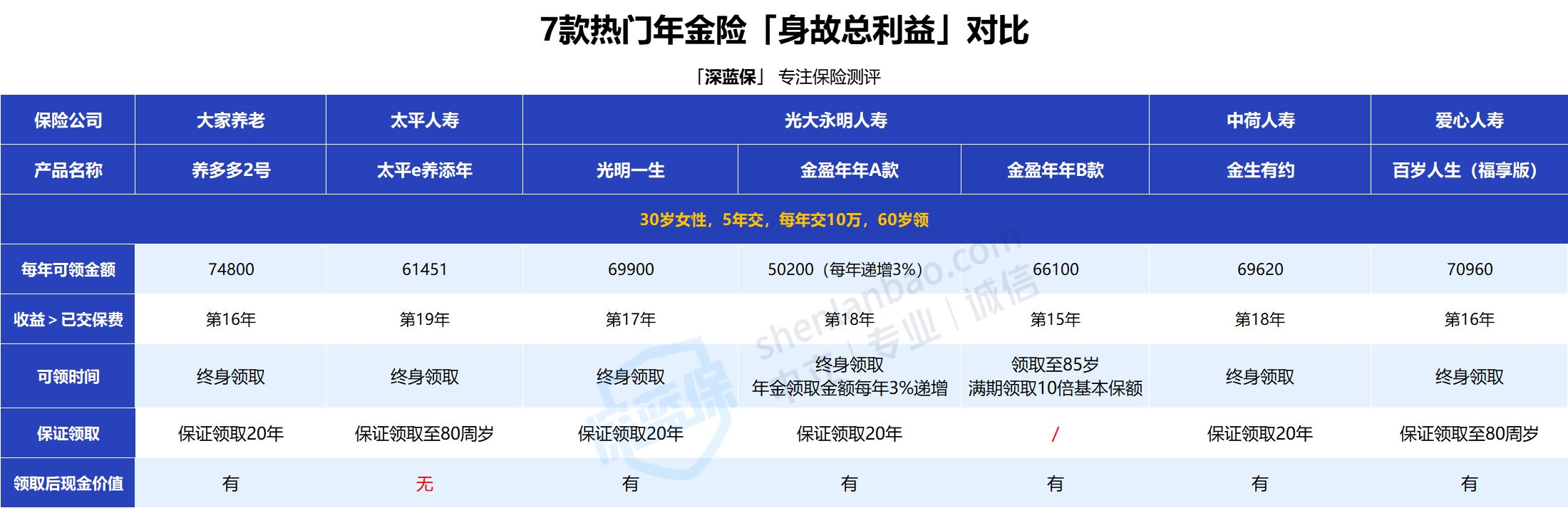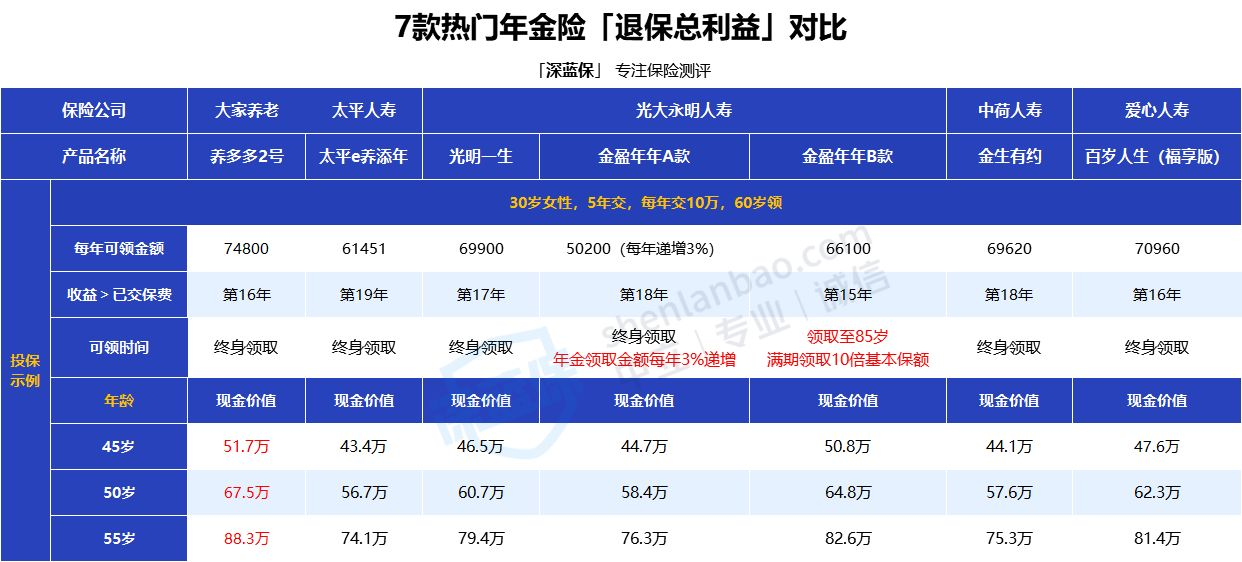 这次测评,深蓝君经过层层筛选和对比,从网上找来了7款市面热销的年金险产品。