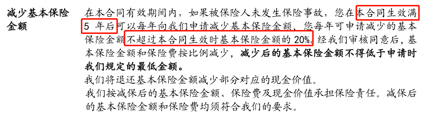 这款产品若想要减保需要等到保单生效满5年后,减保不限次数,只要每年减保的额度不超过基本保额的20%即可。