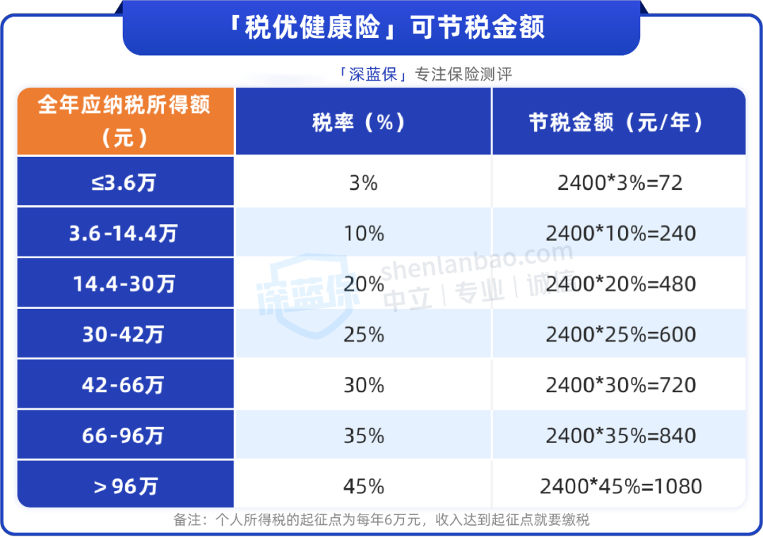 最开始的税优健康险,税前最多能抵2400元,每年最高节税1080块。