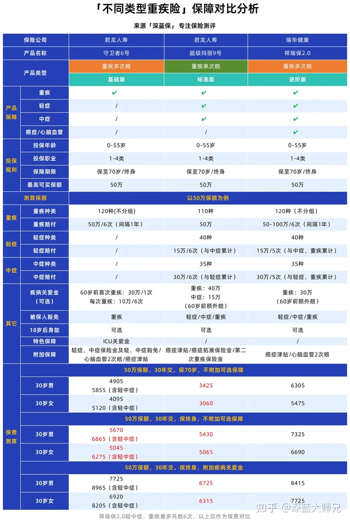 以上介绍的3个版本,基本覆盖了目前重疾险的主要类型,大家可以根据自己的预算和实际情况,从中选择适合自己的就好。