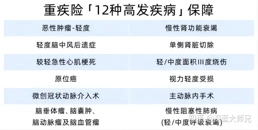 为了避免你们踩坑,我也整理了目前高发的12种轻中症,你们买的时候注意认真对比: