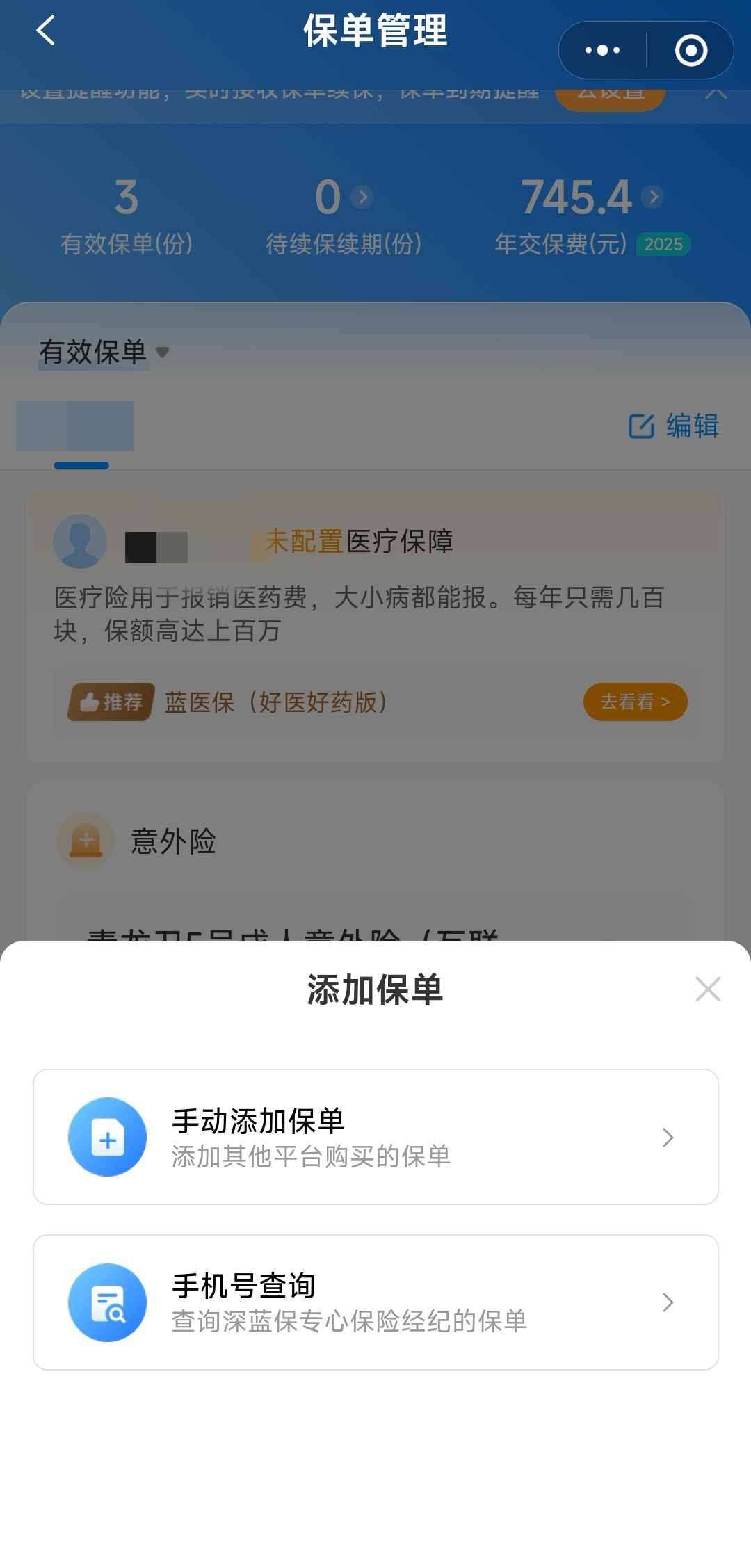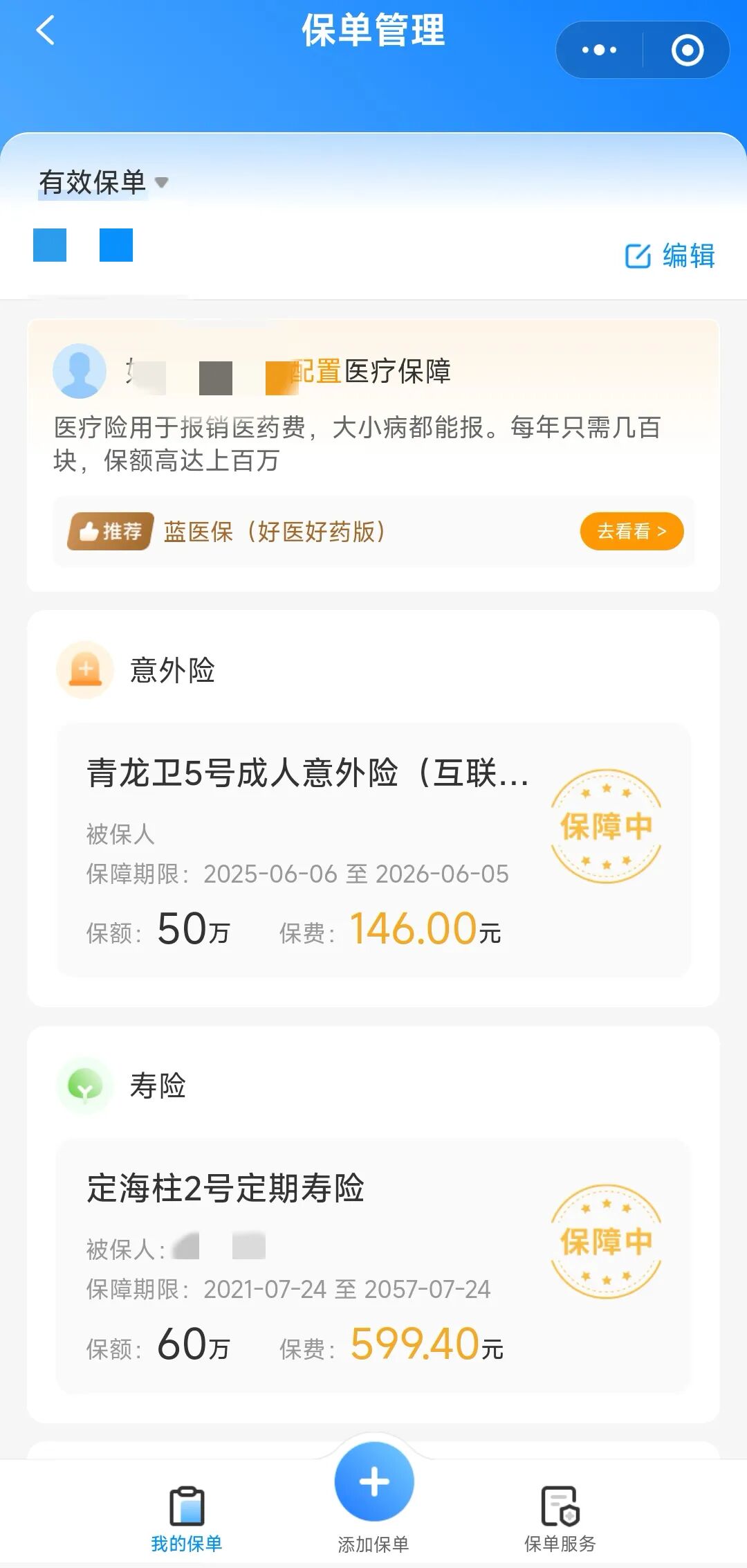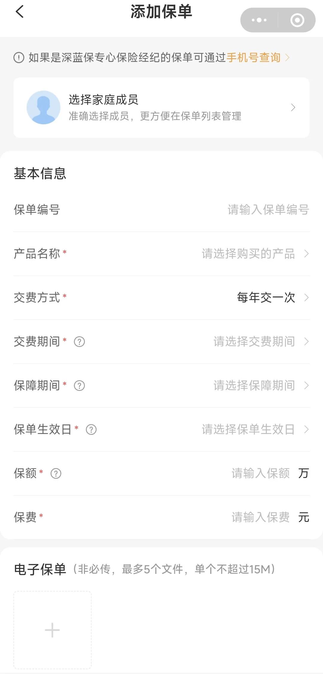 在我们这买的保险,可以一键导入,要是在其他地方买的,也可以自行手动添加,同样能将保单分享给家人。