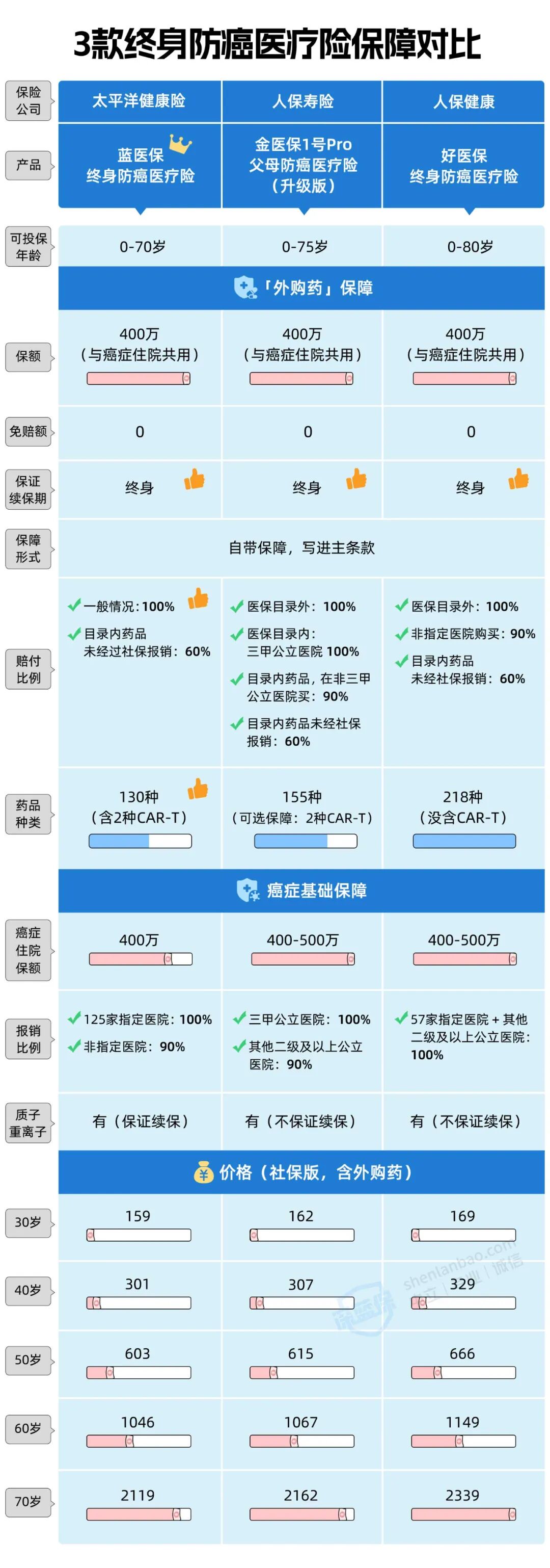 想要外购药报更多,蓝医保·终身防癌医疗险是首选,对比其他产品,它有3大优势: