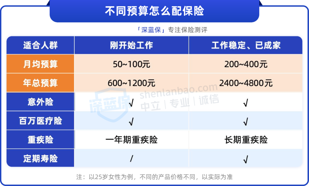 年轻人还可以搭配一份一年期重疾险,二三十岁买50万保额每年只需几百块,很实惠。万一不幸确诊重疾,它能赔一笔钱用来弥补收入损失。