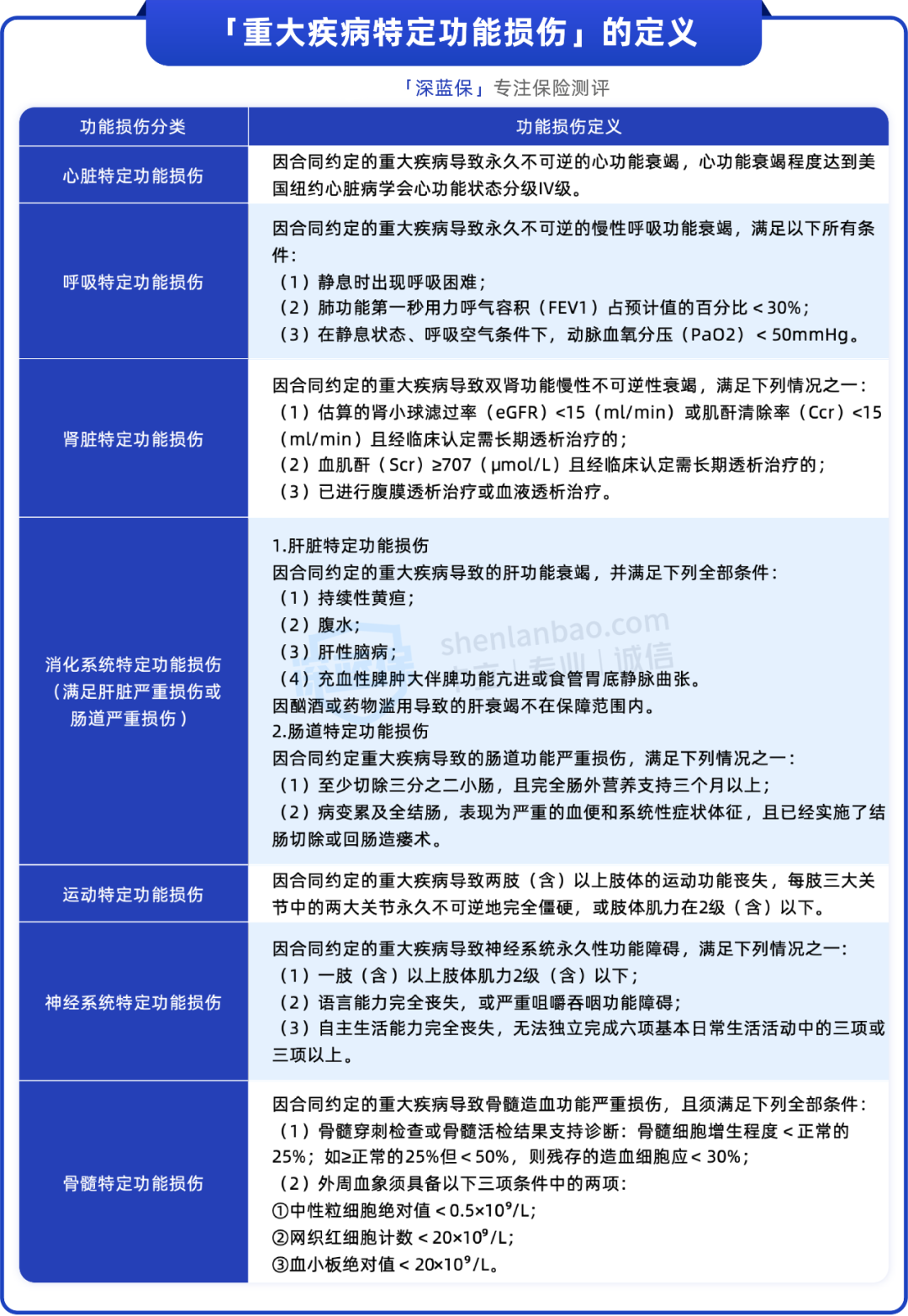 众民保最高投保保额是50万,但它自带一项「重大疾病特定功能损伤」,符合一定条件,能再赔100%保额。