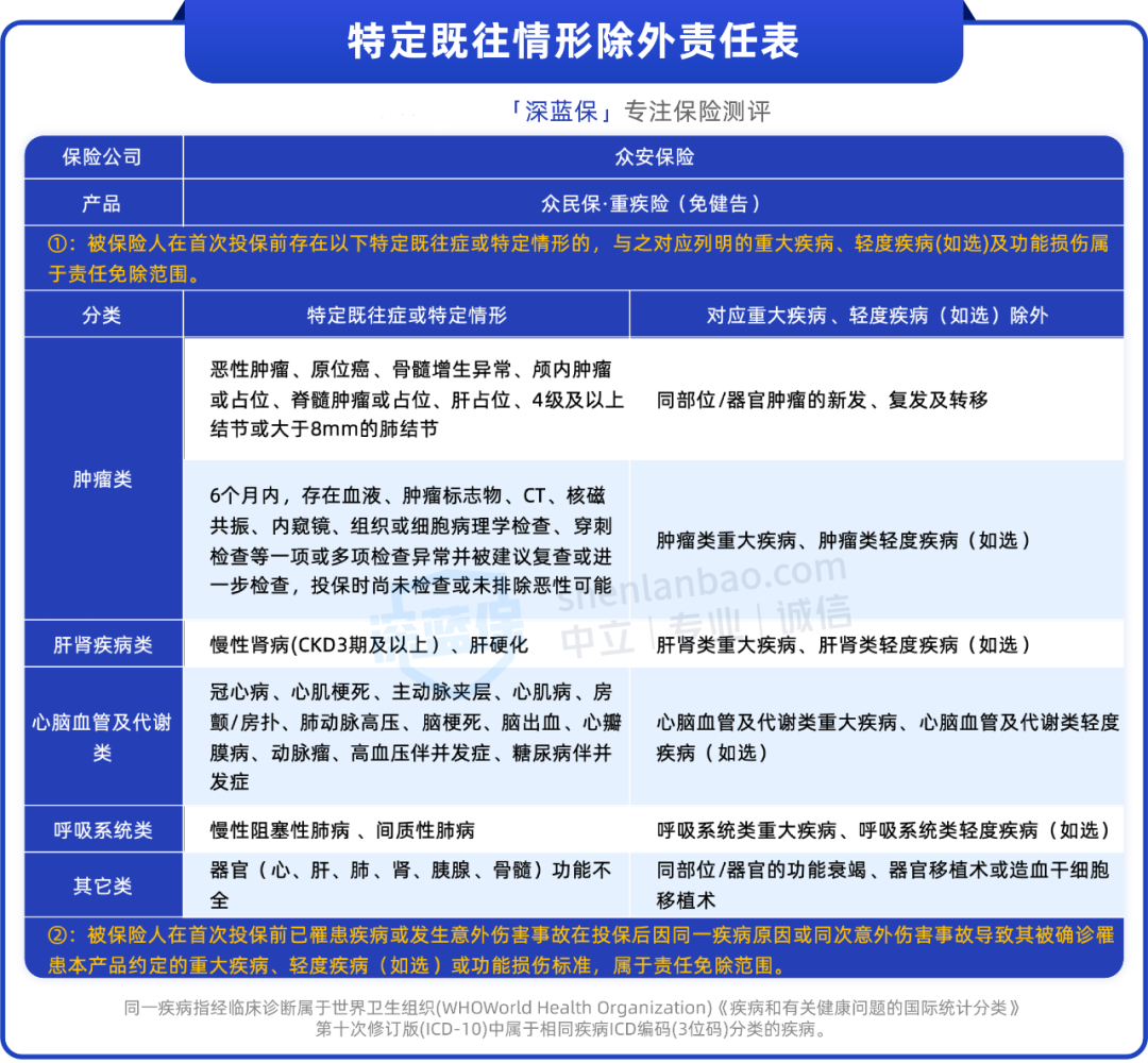 前面我们有讲过,众民保没有健康告知,但是对特定既往症或情形是不保的。