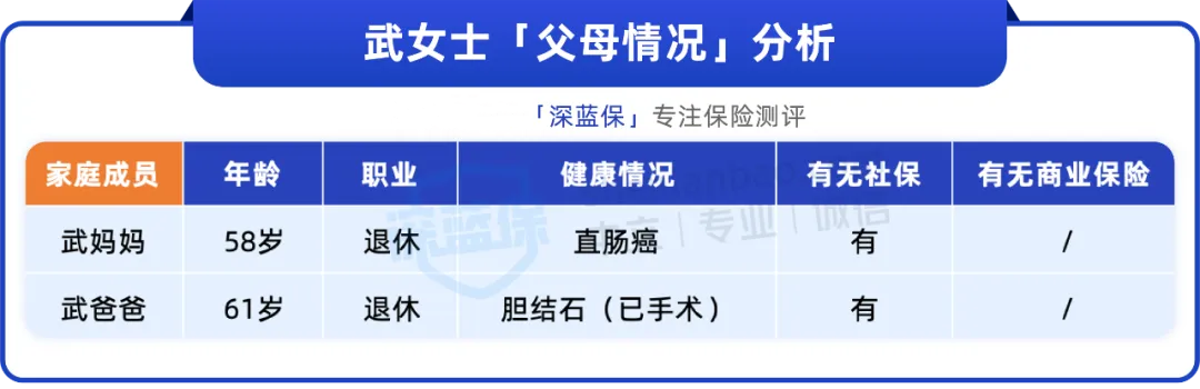 这场大病把一家人的积蓄都花光了,武女士很怕爸妈再生病,自己无力承受,于是找到了我们,想帮他们配好保险,万一有事能分担经济压力。