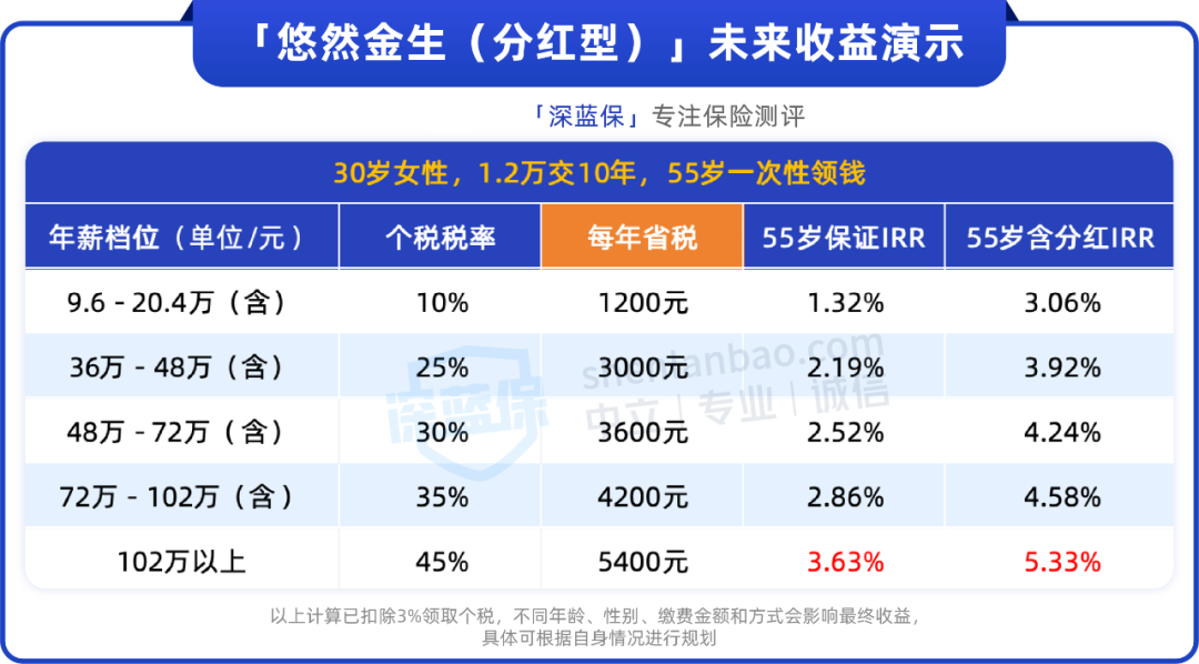 比如达到30%税率,每年省下3600元,保证IRR能有2.52%。