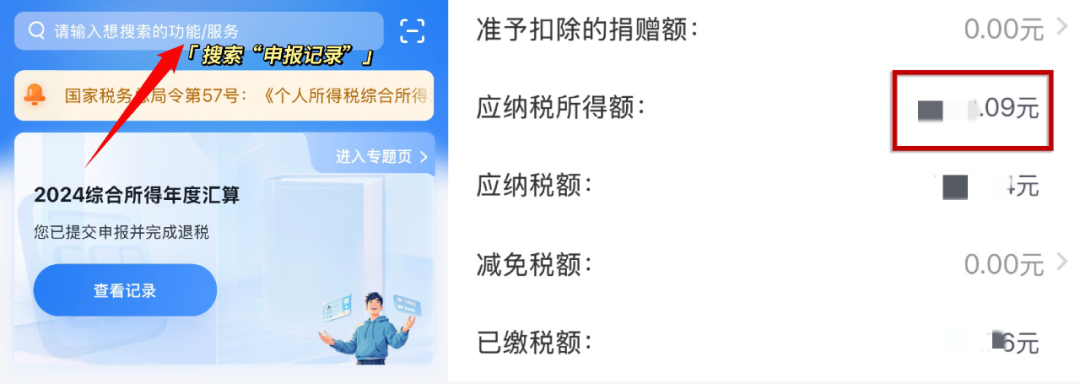 首页搜索“申报记录”→“已完成”→“年度汇算”。