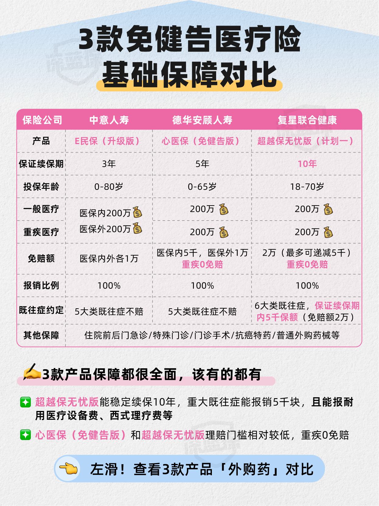 今天,我们筛选了3款能「保证续保」的免健告百万医疗险: