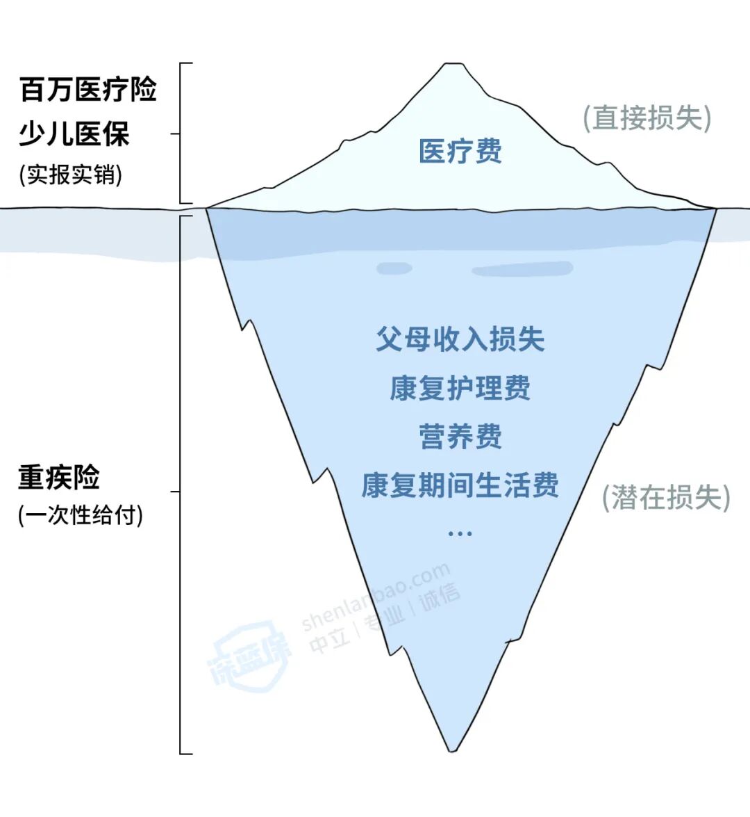 毕竟娃万一生大病,除了医疗费本身,后续的康复费、生活费,父母的收入损失、房贷车贷,都要靠重疾险来承担。