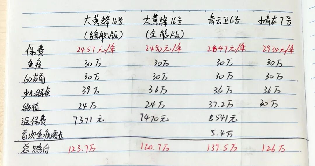 本来还想再算下杠杆率,结果转念一想:两款大黄蜂16号和青云卫6号,都能“返保费”,如果不幸出险,不就相当于“0元购”嘛,要啥杠杆率?