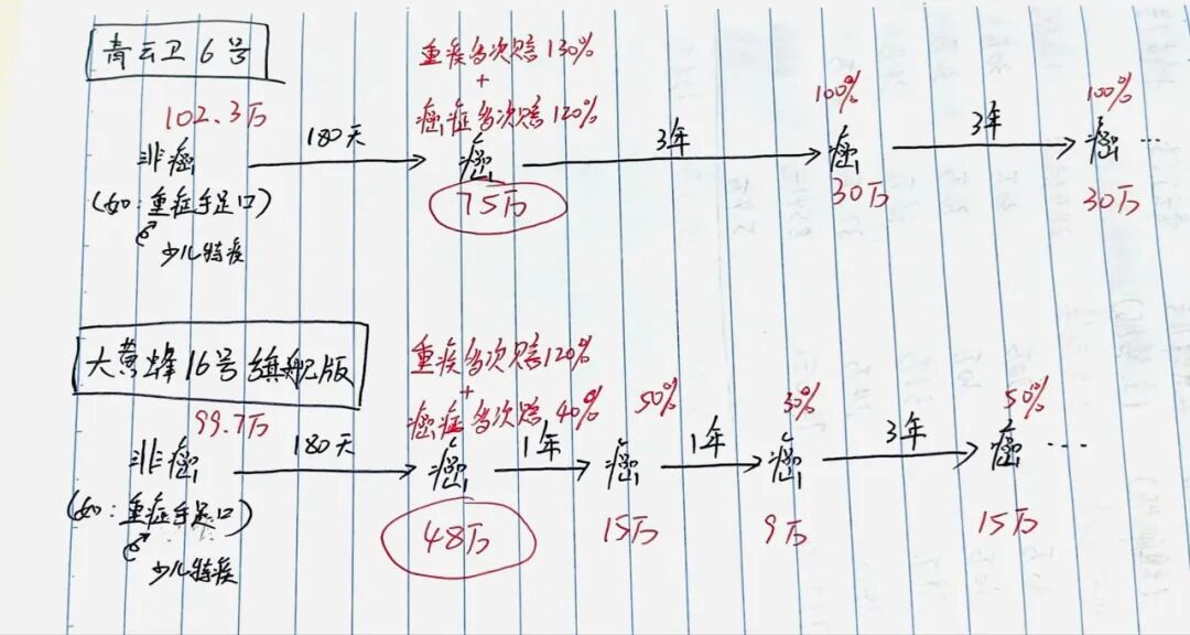 ④青云卫6号的移植相关赔付按移植保险金30万+移植医疗津贴6千/月(假设治疗1年)来测算