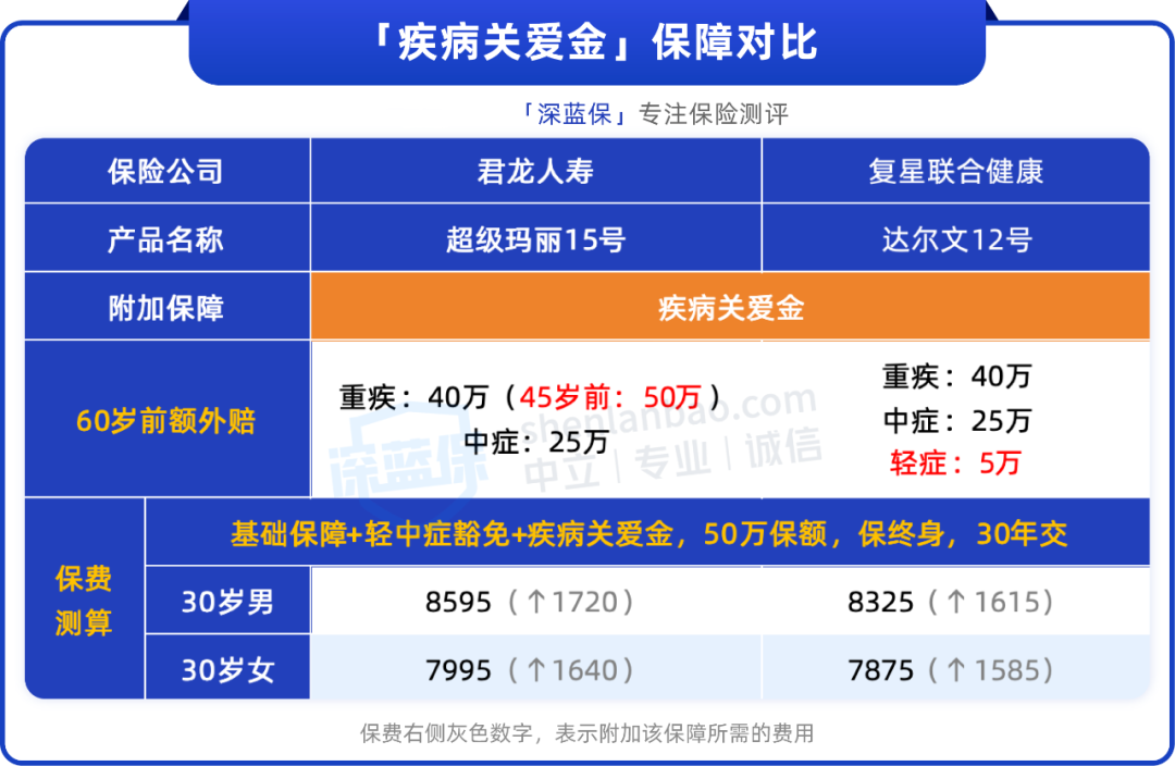 两款产品的疾病关爱金保障如下: