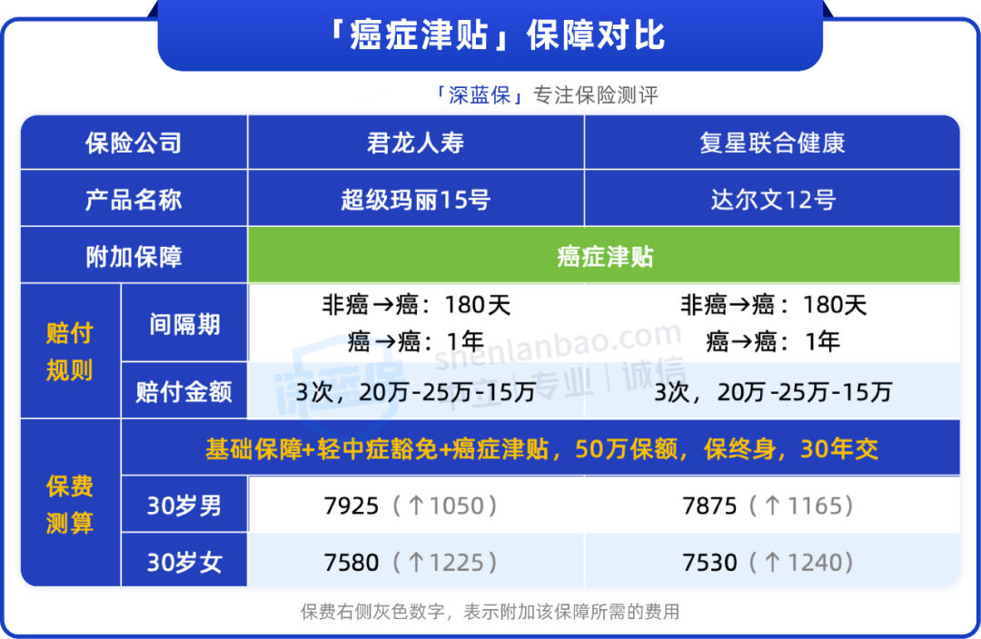 两款产品癌症津贴的赔付规则是一样的: