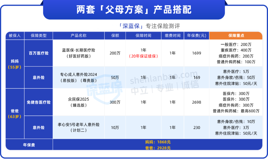 弄清楚医疗险怎么选之后,下面一起来看,两套五六十岁的父母方案。