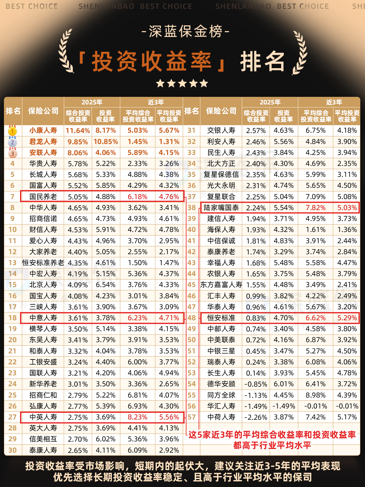 中英、中意、中荷、陆家嘴国泰、恒安标准这5家,近3年投资收益率高于市场的平均水平,推荐优先考虑。