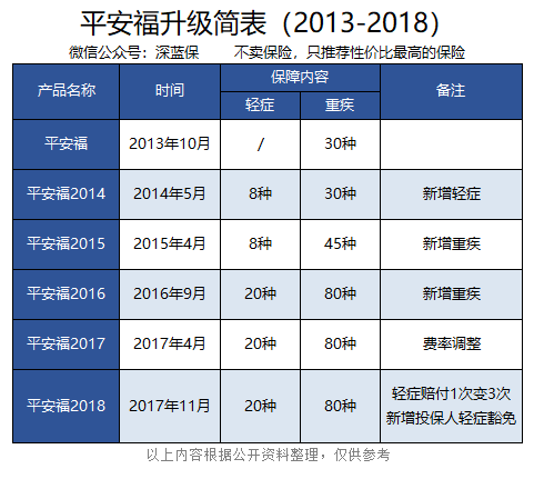 升级时间:目前平安福 2018 升级方案尚未公布,之前平安福 2017 升级活动已经于 6-7 月结束;