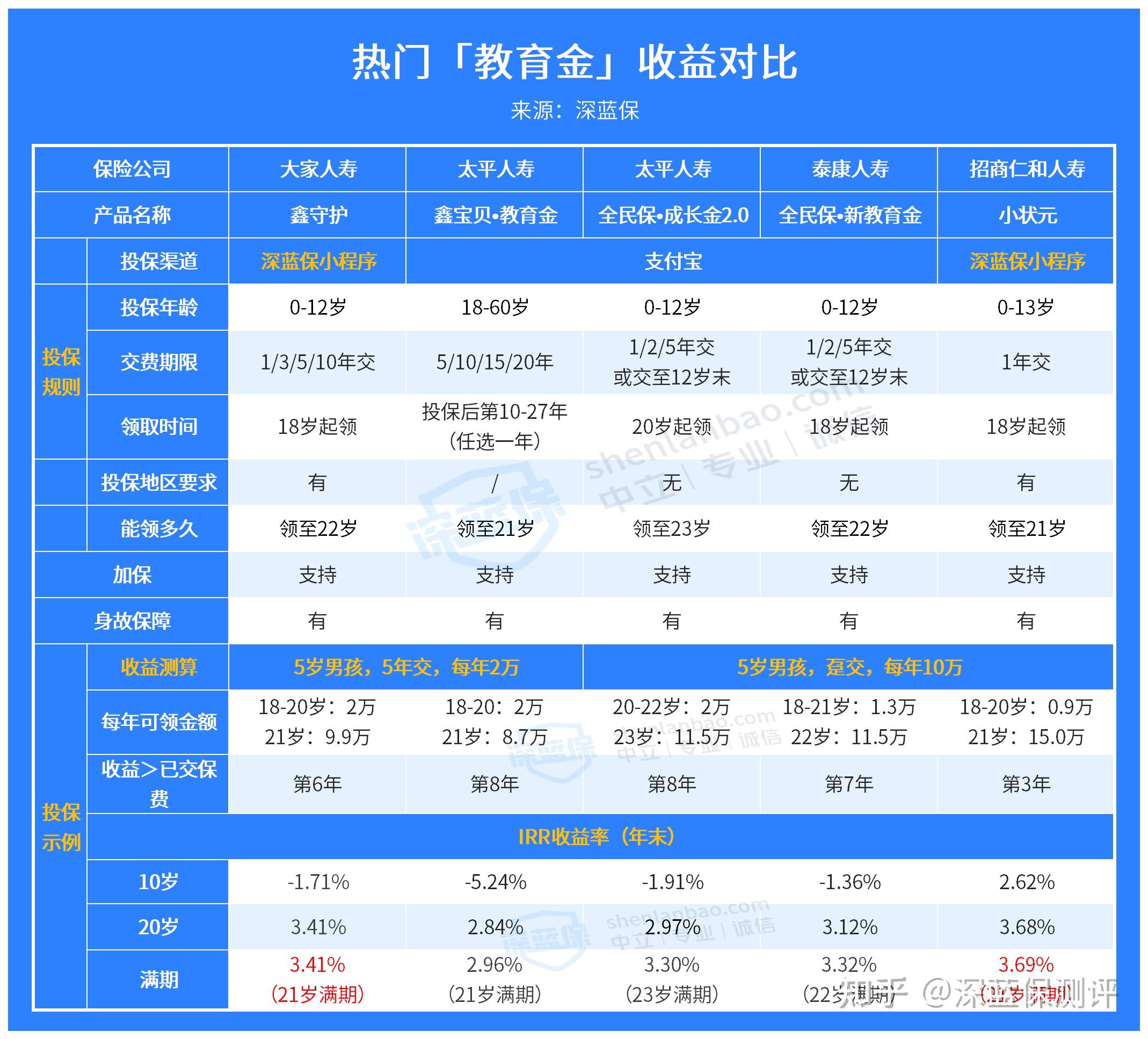 通过横向对比,我们对全民保教育金的各个维度做出分析,得出以下结论:
