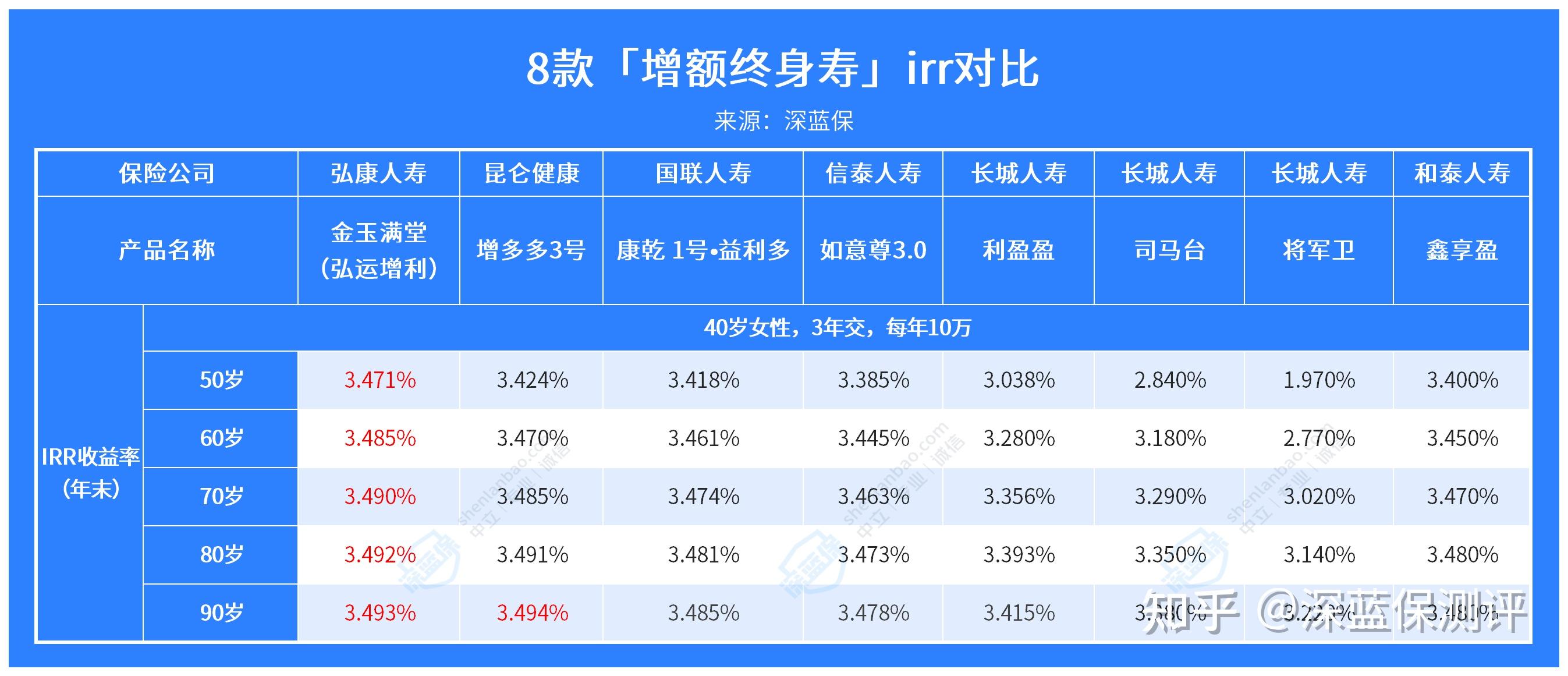 一般增额终身寿保额的内部增长率(IRR)最高不超过3.5%,虽然相比年金险的最高4%来说比较低,但是增额终身寿胜在稳定,毕竟稳住基本盘也是很重要的。