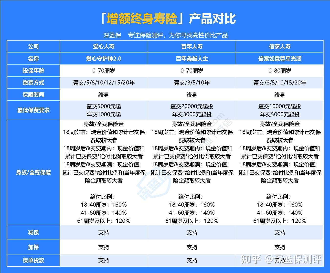 从表格可以看出,爱心守护神2.0和百年鑫越人生是最高70岁可投,信泰如意尊星光版最高80岁可投,三款产品在保障时间上都是保终身的,同样也都支持减保、加保和保单贷款。