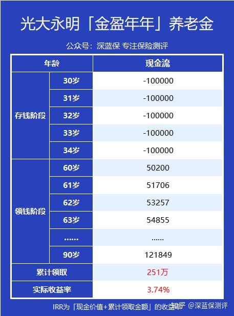 从60岁开始,就可以每年领取一笔养老金,比较特别的是,金盈年年A款养老年金每年给的额度是会上涨的,一年增长3%。