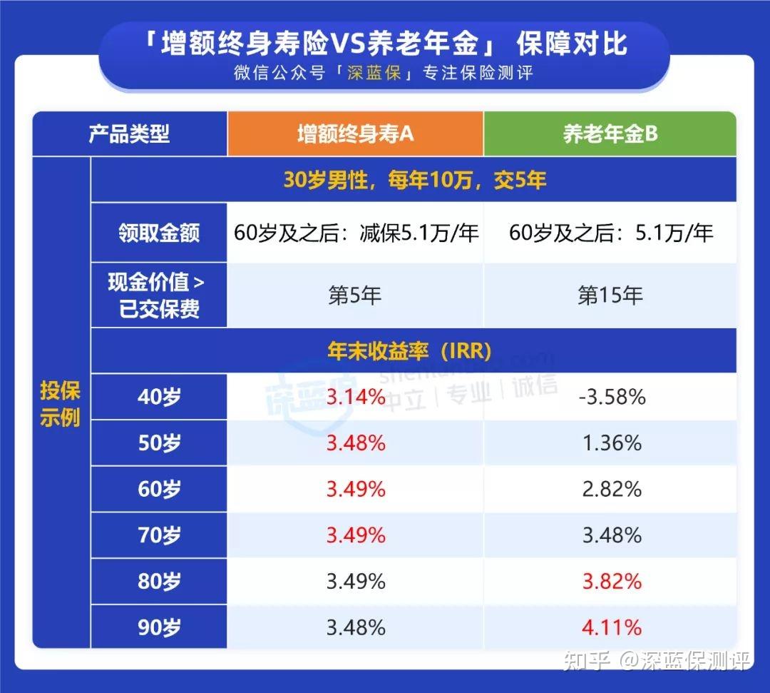 换句话来说,若用户选择投保养老年金,在后期可以获得更多的收益,这个是增额终身寿所无法比拟的。