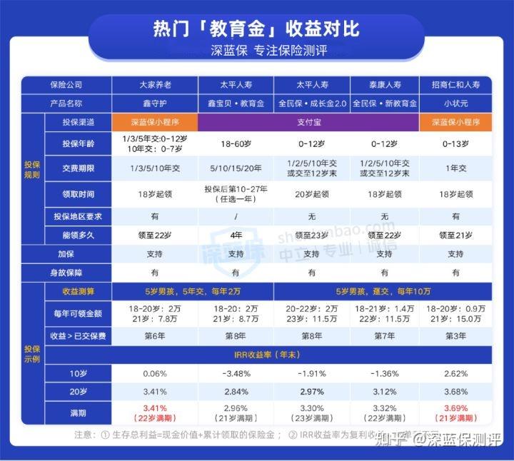 为了大家避免大家踩坑,深蓝君从市面上多款教育保险产品,层层筛选,挑选出了几款目前收益不错的教育保险产品。