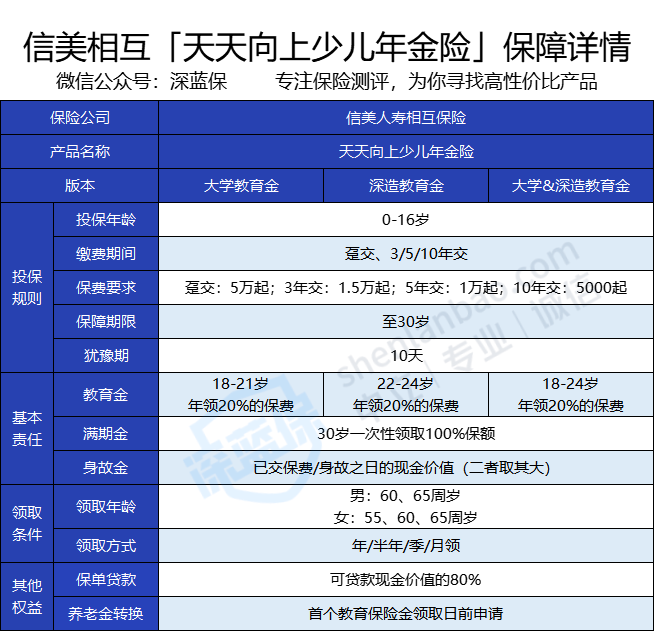 今天,深蓝君就带着大家一起来了解一下信美相互的天天向上教育金。