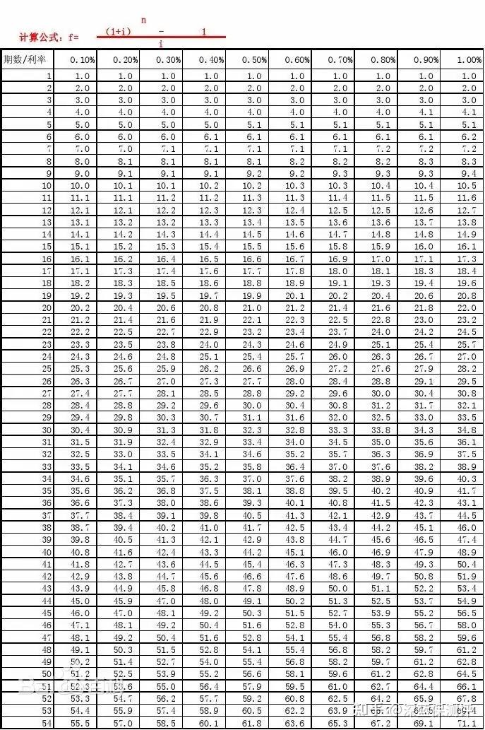 式中[(1+i)n-1]/i的为普通年金、利率为i,经过n期的年金终值记作(S/A,i,n),可查看下方的年金终值系数表.