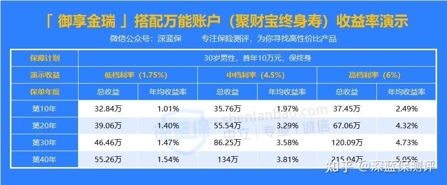 下面就以搭配聚财宝终身寿为例,看看万能账户的收益率有多少。