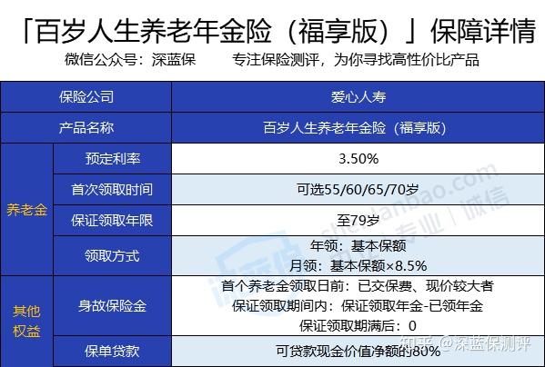 今天,深蓝君就带着大家一起来了解一下爱心人寿的百岁人生养老年金险(福享版)。
