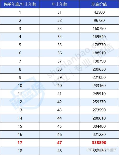 可以看到,要到投保第17年才能保单现金价值超过已支付保费,保单现金价值超过已支付保费时间很漫长,如果在这之前退保,就会有所损失。
