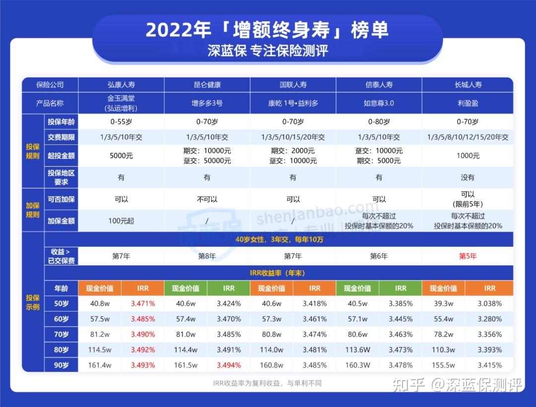 下面挑选了5款热销的增额终身寿,从投保规则、加保规则、IRR收益率这几方面进行对比,可以从中挑选出你认为最适合你自己的增额终身寿产品。
