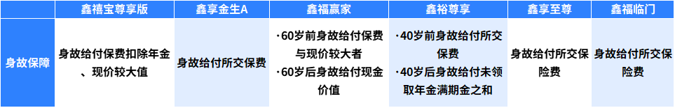 接下来我们看看中国人寿这六款储蓄型养老年金保险的身故保障:
