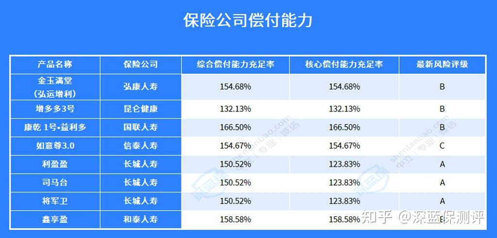 这 8 款产品背后的保险公司,都达到了相关标准,只有信泰人寿的风险评级为 C 。