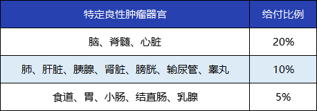 首次确诊特定部位的良性肿瘤,并做了手术,不同部位按比例赔付,最高能赔20%保额。