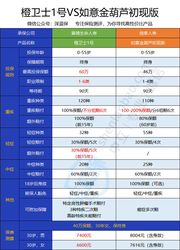 总的来看,橙卫士1号和如意金葫芦初现版,保障都很全面,都很不错。