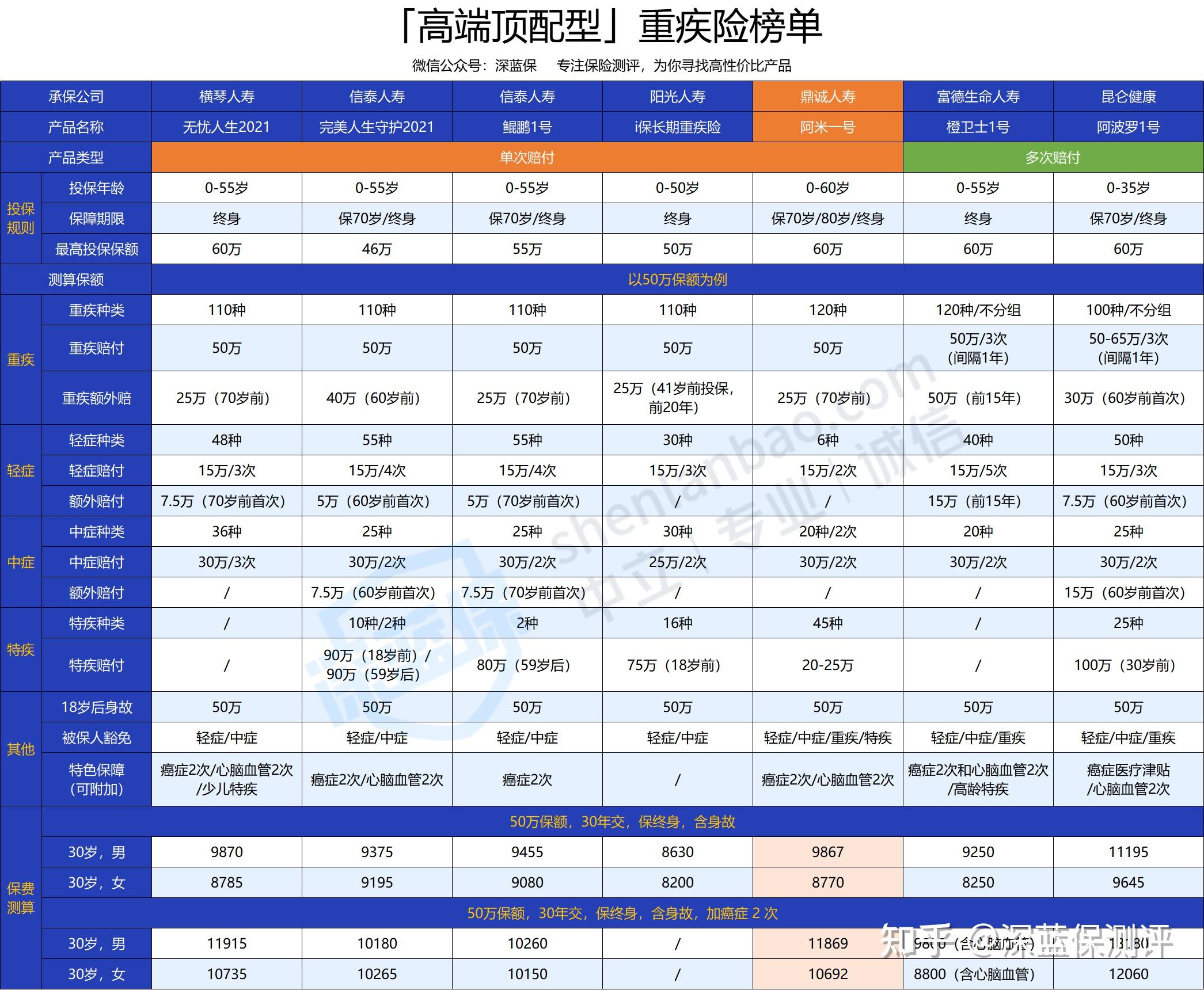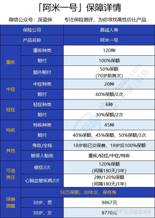 - 适合女性投保:可以考虑鼎诚阿米一号,70岁前患重疾多赔50%,女性价格有优势,含身故产品中价格最便宜!