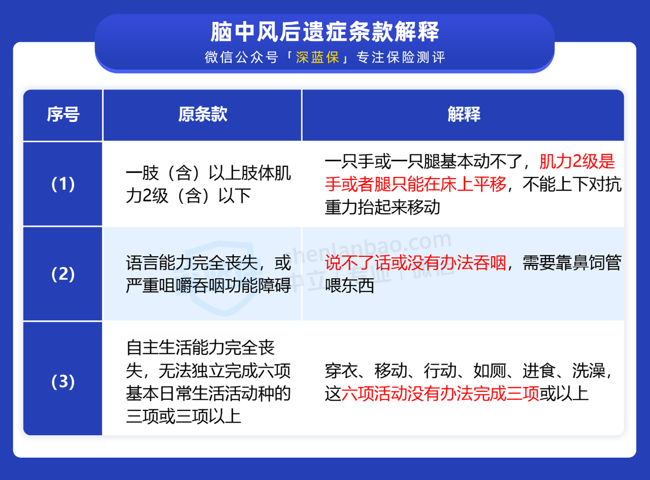 条款里解释的这些内容,我们联想一下电视剧里看到的中风病人,是不是理解更深刻了。