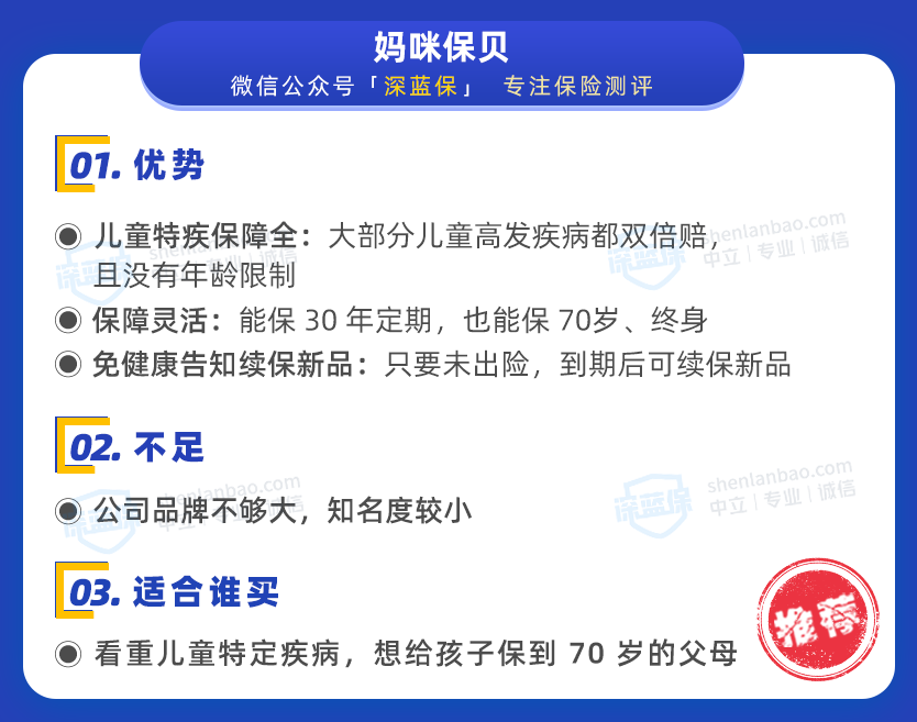给孩子保到 70 岁,可以优先考虑妈咪保贝,我们做了简要总结: