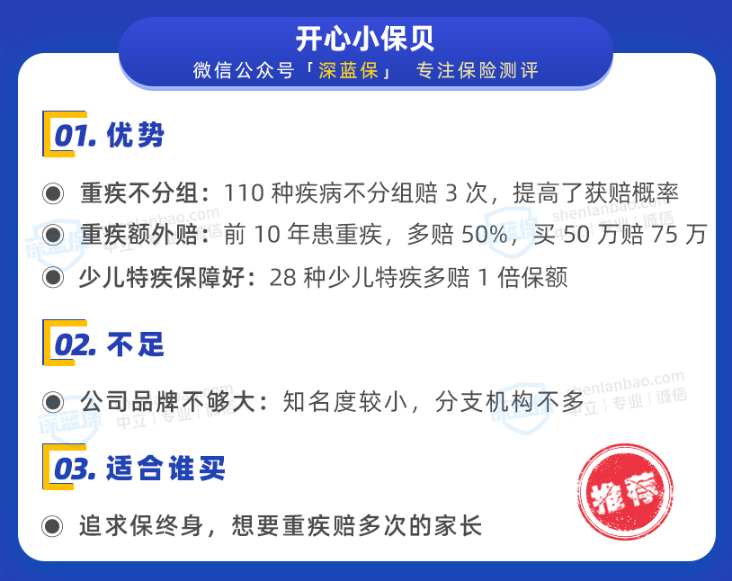 保终身最值得选的就是开心小保贝,这款产品的优劣势我们总结如下:
