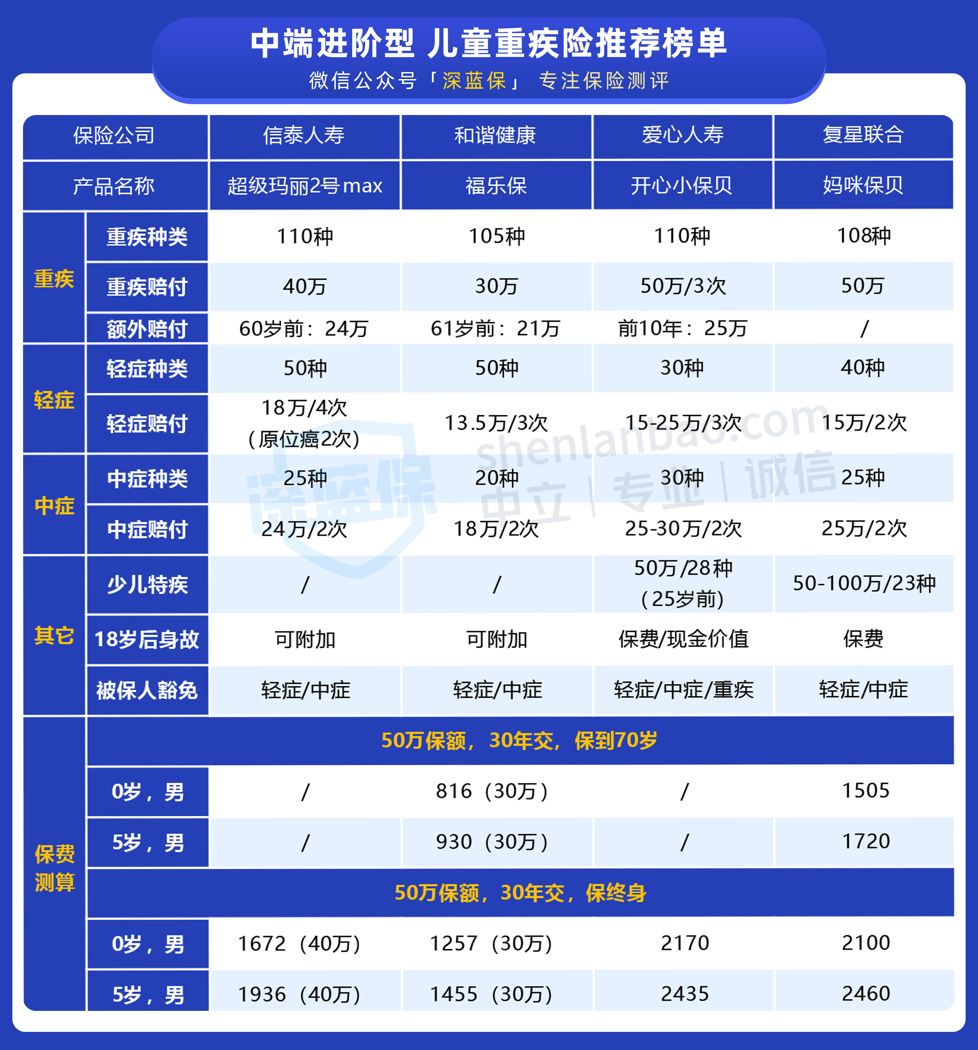为了满足这部分家长的需要,我们专门推出中端进阶型的儿童重疾榜单:可以保到孩子 70 岁或终身。
