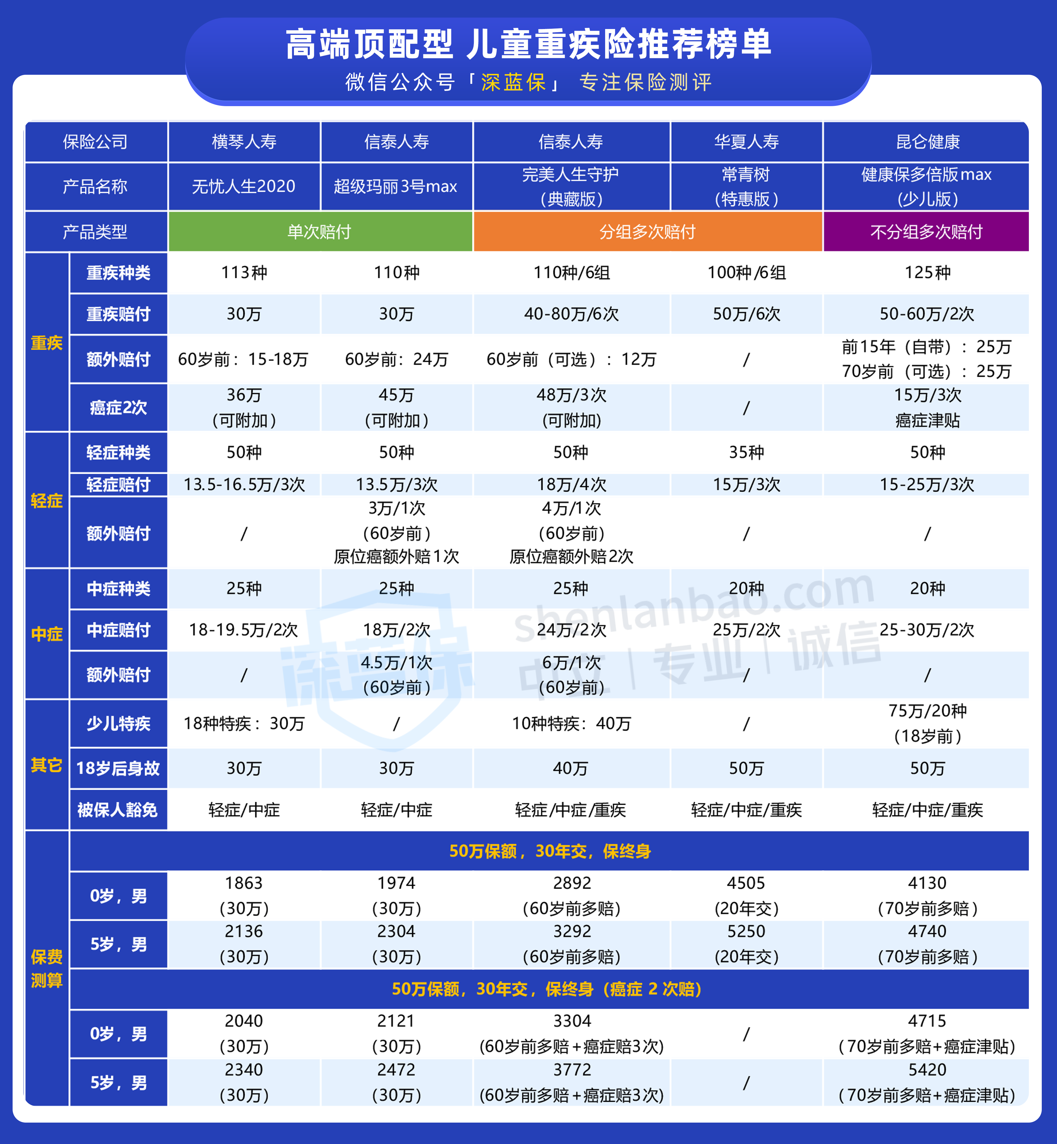 深蓝君觉得给孩子买重疾险,对于普通家庭来说,预算有限,保20年30年就差不多了;