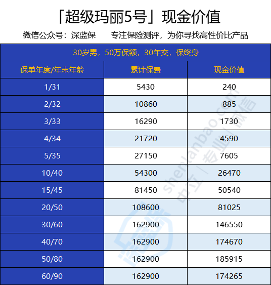 因此,我们来看一下超级玛丽5号重疾险的表现: