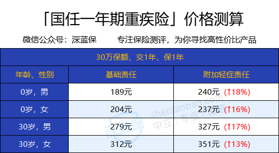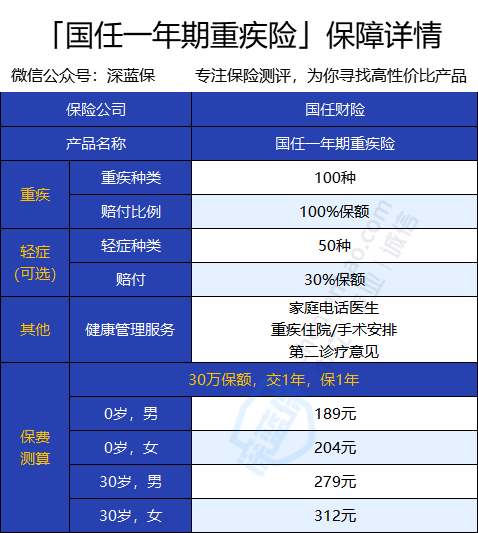 可以看到,国任一年期重疾险是一款纯重疾险,可选轻症责任。