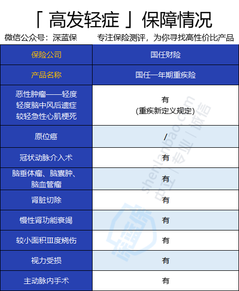 国任一年期重疾险保障了除原位癌以外的高发轻症,高发轻症覆盖率还可以。