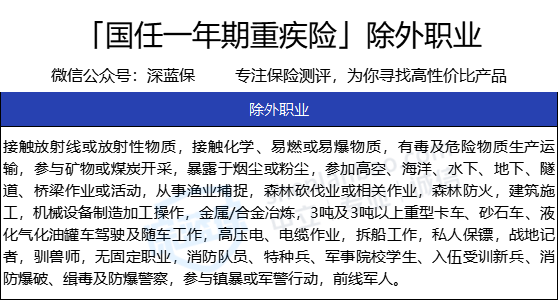 相比之下,国任一年期重疾险无论是在承保年龄、职业限制还是保费上,都不具备任何优势,性价比不高。