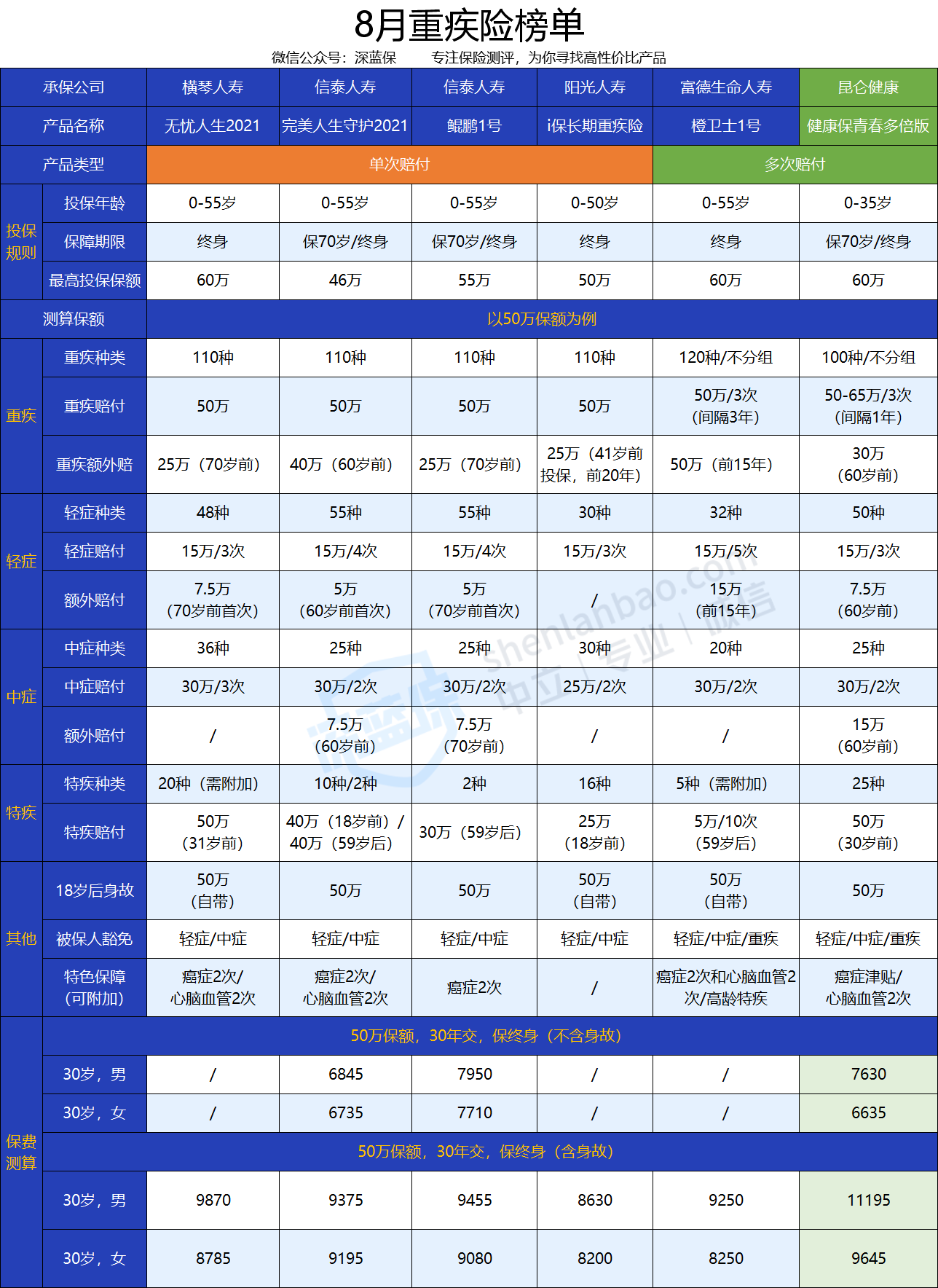 - 如果追求大公司:首选i保长期重疾险,阳光人寿出品,服务好,线下机构多,理赔方便。