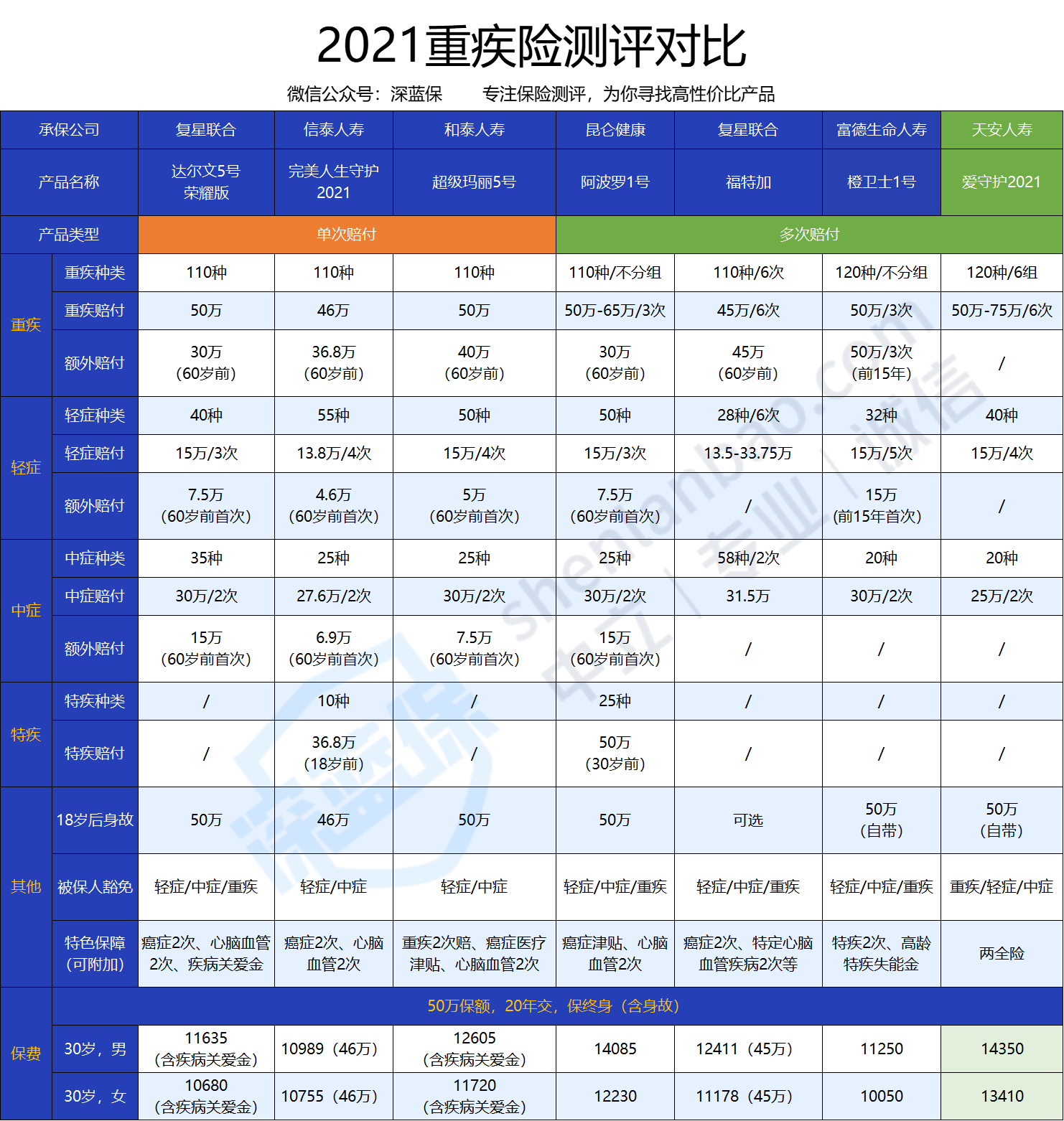 - 如果预算有限:可以考虑单次赔付重疾险产品,如完美人生守护2021,基础保障都有,重疾额外赔付力度也不错,价格不贵,性价比很高。